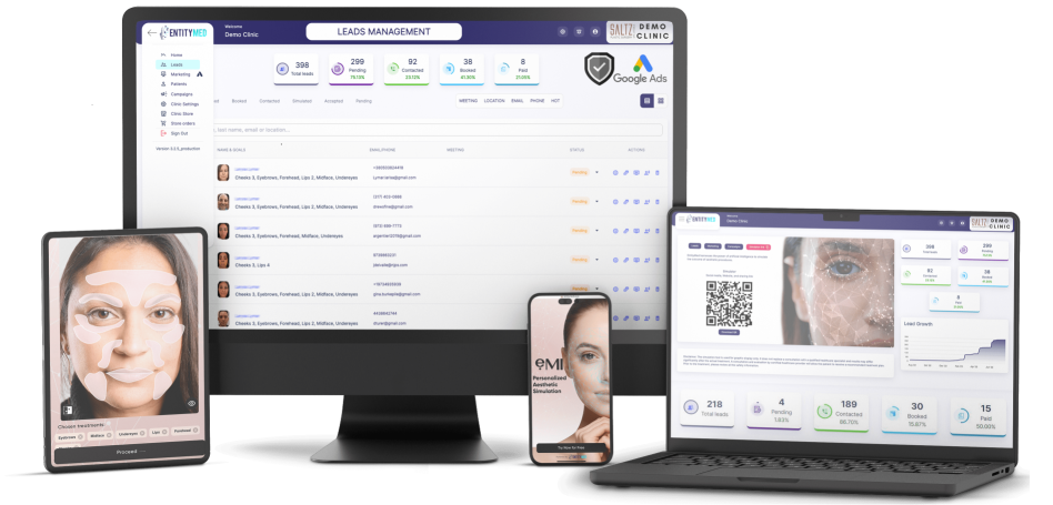 Allegro MedSpa set up their EntityMed platform and saw immediate results. Their custom-branded EntityMed AI Facial Simulator tool captured 120 qualified leads in the first weekend! The EntityMed lead management portal allowed the practice staff to easily manage and nurture these leads and convert them into booked appointments. The EntityMed Google Ads campaign integration simplified their online advertising setup, driving more traffic to their free online simulator tool. EntityMed generated over $25,000 in revenue for Allegro MedSpa within a 2-month timeframe.