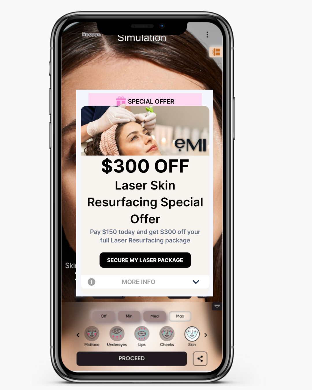 By presenting a Special Offer directly inside the AI Simulator, practices can secure a meaningful deposit instantly, even while the clinic is closed.